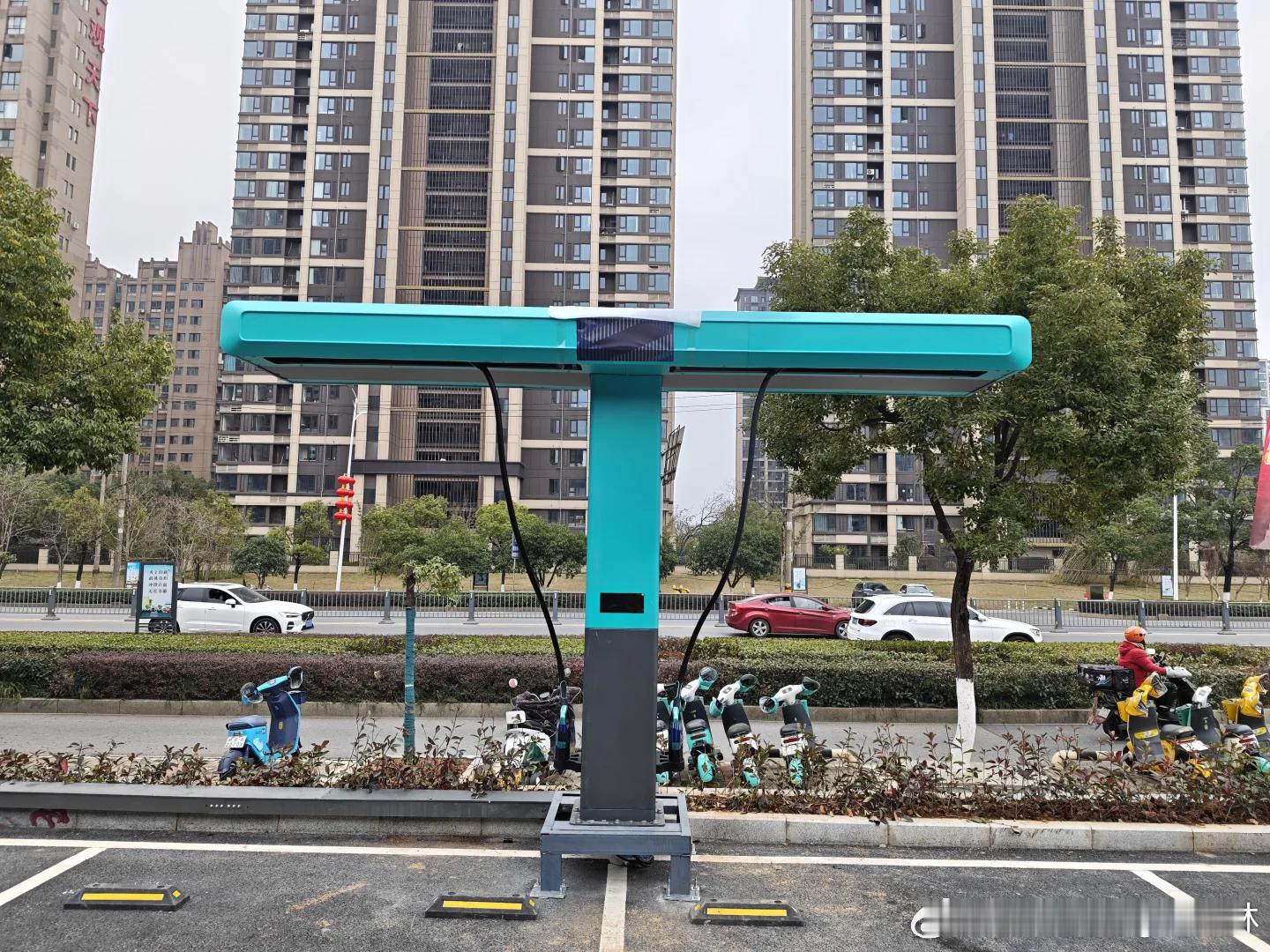 现在配套闪充网络已经慢慢铺开了,就是大家之前在网上看到的那种T字形的充电桩,据说这样设计好处是线缆从两端垂下,方便插(图1)。比之前的 1.0 帅多了(图2)