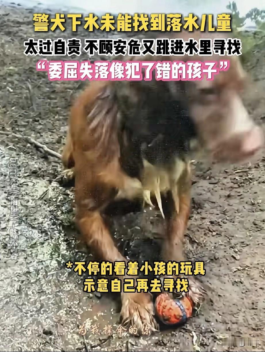 泪目了!一只警犬狗狗执行了一个任务,搜救一位落水的儿童,可找了许久却一无所获,当它上岸之后非常自责,一直在流泪,当看到训导员之后狗狗不停地看着小孩的玩具,示意训导员自己再去寻找。 然后就不顾自己的安危再次义无反顾地跳进水去寻找孩子。这就是刻在狗狗骨子里的责任感,它无论如何也要去完成自己的使命。幸运的是这一次在搜救人员的帮助下,狗狗找到了落水儿童,他们终于把他救了上来,当狗狗再次上岸的时候,它非常兴奋开心!因为它完成了任务!