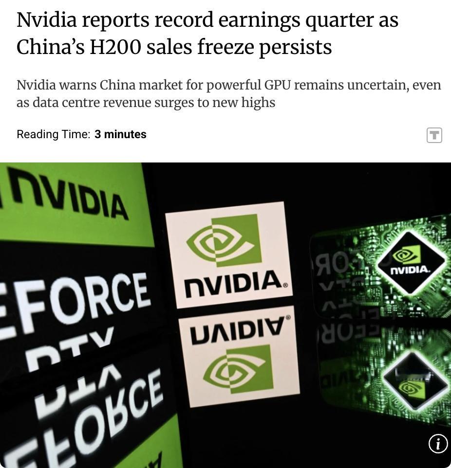 外媒:英伟达创季度营收纪录,H200芯片在华销售仍零收入 英伟达公布截至2026年1月25日的季度财报,营收达681亿美元,同比增长73%,超出市场预期的658亿美元,再创历史新高,主要受数据中心处理器需求激增驱动。 然而,英伟达CFO Colette Kress明确表示,H200芯片在华至今零收入,能否进口仍充满不确定性。 尽管美国政府今年1月已有条件批准H200对华出口(限制条件:出货量不得超过美国本土销量的50%),但中国态度依然不明朗。此前美国商务部官员David Peters也证实,英伟达尚未向中国出售任何H200。 与此同时,中国本土芯片企业近期纷纷赴港或A股IPO,加速填补市场空缺。