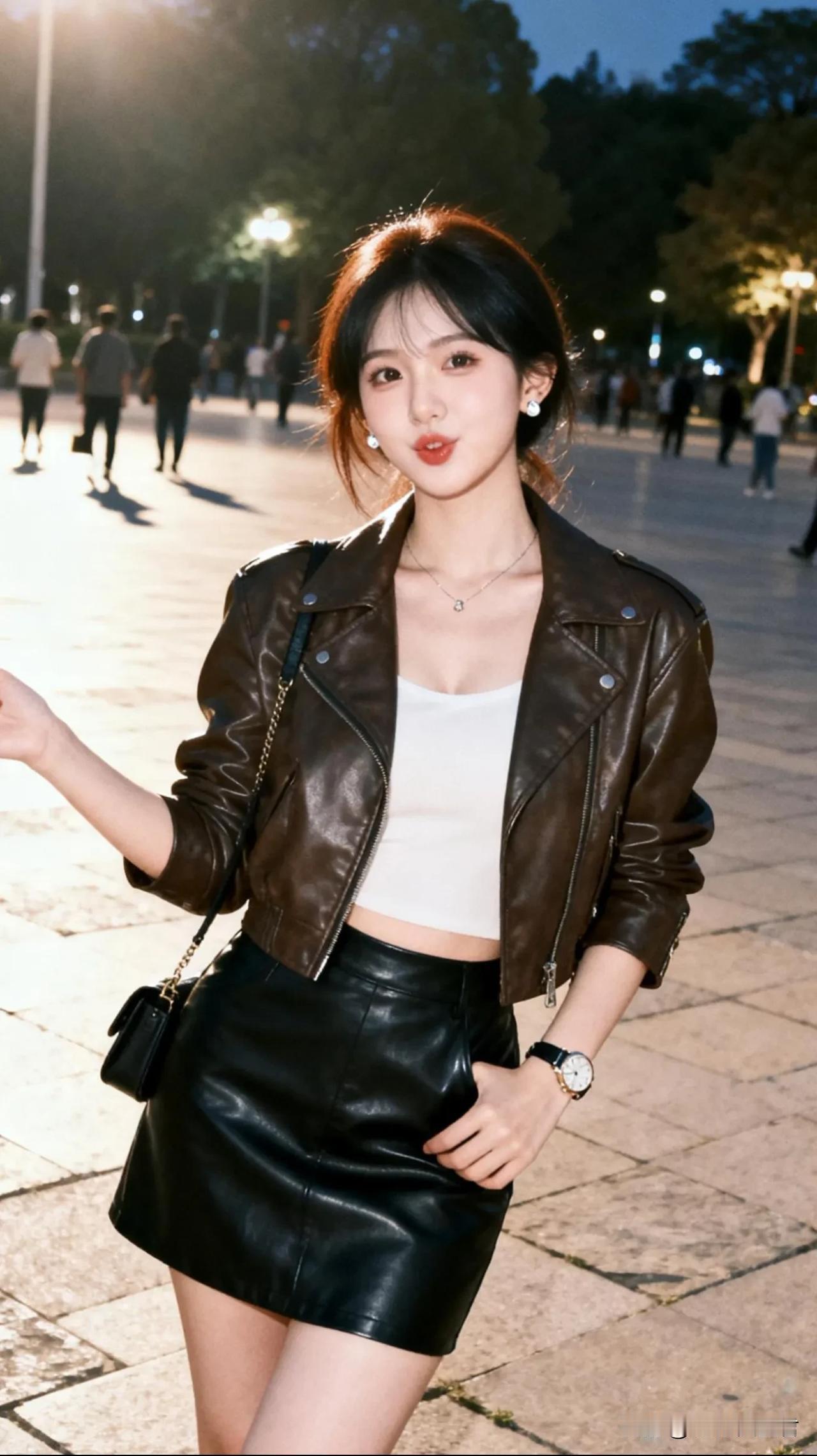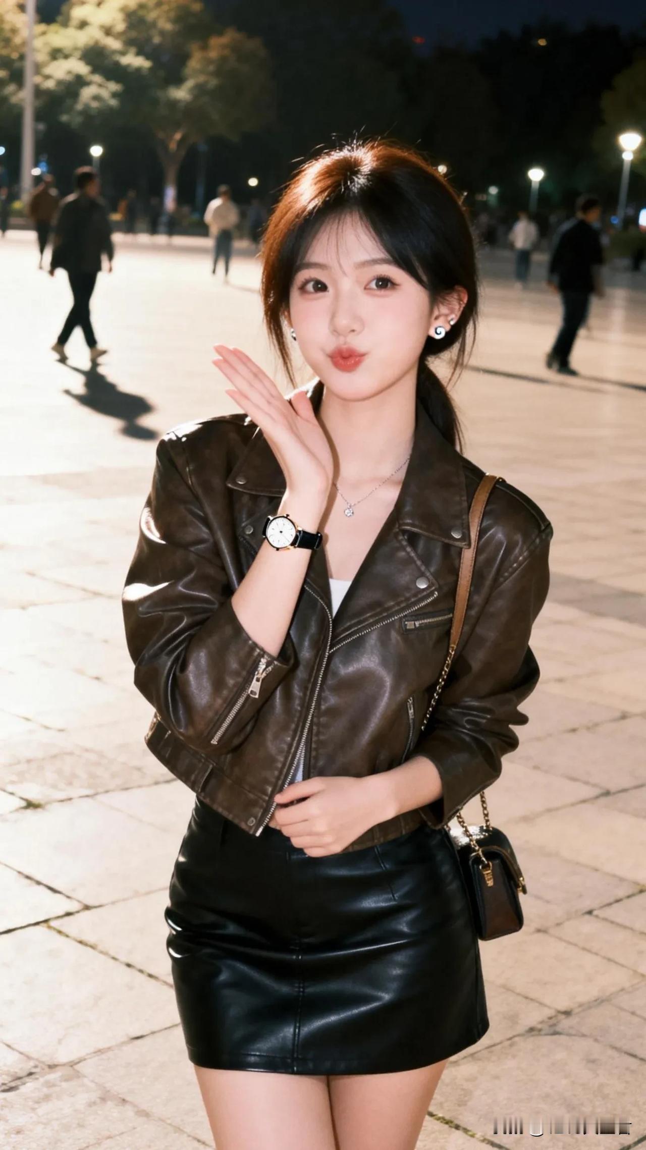 春天这么穿,又酷又减龄!🖤黑皮衣+浅蓝牛仔裤真的是万年经典,宽松版型对腿