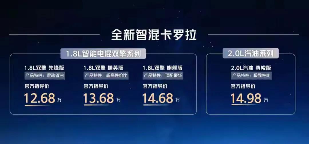 伤害性不大,竞争性极强,当14亿国人以为国产新能源汽车一路高歌猛进,智能化、电气化成为车圈主流时,卡罗拉却在2025年卖出了92,274辆,12月单月销量突破11,962辆,环比增长29.7%。 作为全球累计销量超5000万辆的经典车型,丰田卡罗拉双车依托TNGA架构,以轿车与SUV双产品线布局,兼顾燃油与双擎双动力,凭借省油、安全、大空间的核心优势,成为家用出行的优选。 动力上,卡罗拉双车提供多元选择。第五代1.8L智能电混双擎,WLTC综合油耗低至4.06-4.13L/100km,满油续航超1000公里,加92号油即可,用车成本极低。 燃油版升级2.0L发动机+CVT变速箱,动力平顺强劲。丰田20余年混动技术积淀,让THS系统更可靠,三电系统享8年/20万公里质保,长期用车更安心。 安全与智能方面,双车全系标配TSS 3.0智行安全系统,实现L2级辅助驾驶,全速域ACC、车道居中、预碰撞系统全方位护航。 车身刚性提升,标配8气囊与稳定系统,搭配前麦弗逊+后双横臂独立悬挂,操控与滤震兼顾。座舱搭载12.9英寸大屏与8155芯片,支持无线CarPlay,智能体验流畅便捷。 空间与实用性上,轴距达2750mm,470L后备厢能轻松满足家庭载物需求。轿车侧重稳重舒适、风阻更低;SUV坐姿高、视野好、通过性强,适配多路况出行。 卡罗拉双车以全能实力,平衡性价比与实用性,是追求低用车成本、高可靠性家庭的理想座驾。2026款已经上市,叠加优惠补贴后,智混双擎先锋版低至9.68万元,非常值得推荐。