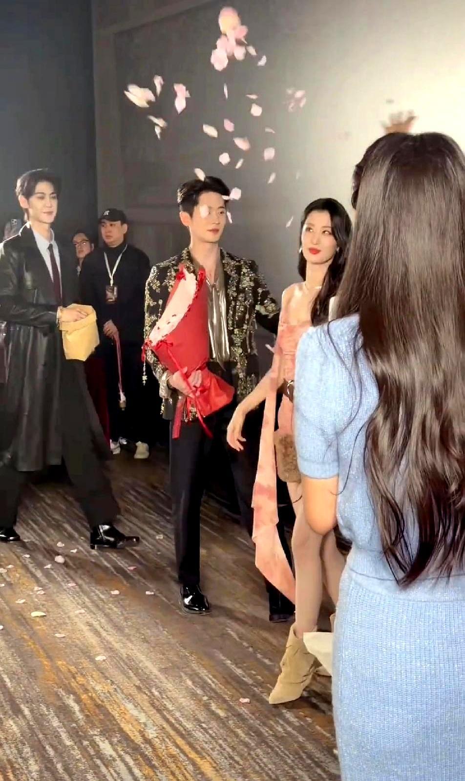 王楚然接花瓣笑到眯眼,丞磊盯着她头发连喊三次停。 你看成何体统里那场花瓣雨戏,王楚然蹦着接花瓣,碎发沾了瓣儿自己没察觉。丞磊抬手就帮她摘,指尖蹭过发梢时还顿了顿,眼睛全程黏在她脸上。 杀青后直播陪看,王楚然哭到鼻尖发红。丞磊递完纸巾还凑过去说,去吃点东西吧。语气软得能掐出糖,粉丝直接刷爆弹幕。 闹的人明媚坦荡,宠的人温柔克制,嗑的人上头难忘。你嗑到这对鱼蛋CP了吗?