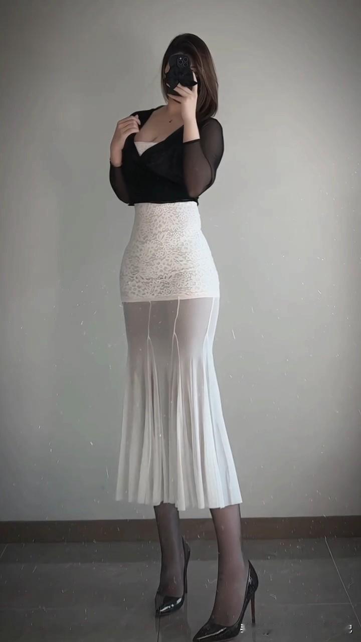 气质穿搭怎么穿才恰到好处?微胖女生的性感密码|黑白鱼尾裙封神现场✨ 姐妹们,这套黑白撞色真的把“欲”拿捏住了!黑色微透雪纺衫自带朦胧滤镜,V领+微透材质,把肩颈线条修饰得又细又长,还能悄悄藏住拜拜肉。 下装这条白色蕾丝鱼尾裙是灵魂!高腰设计直接把腰线掐到最细,上半部分蕾丝勾勒曲线,下半部分网纱裙摆垂坠感拉满,走路时摇曳生姿,把胯部线条修饰得又顺又美。 搭配黑丝+尖头高跟鞋,冷暖碰撞平衡甜酷,微胖身材也能穿出S曲线,约会、派对都能slay全场!气质穿搭