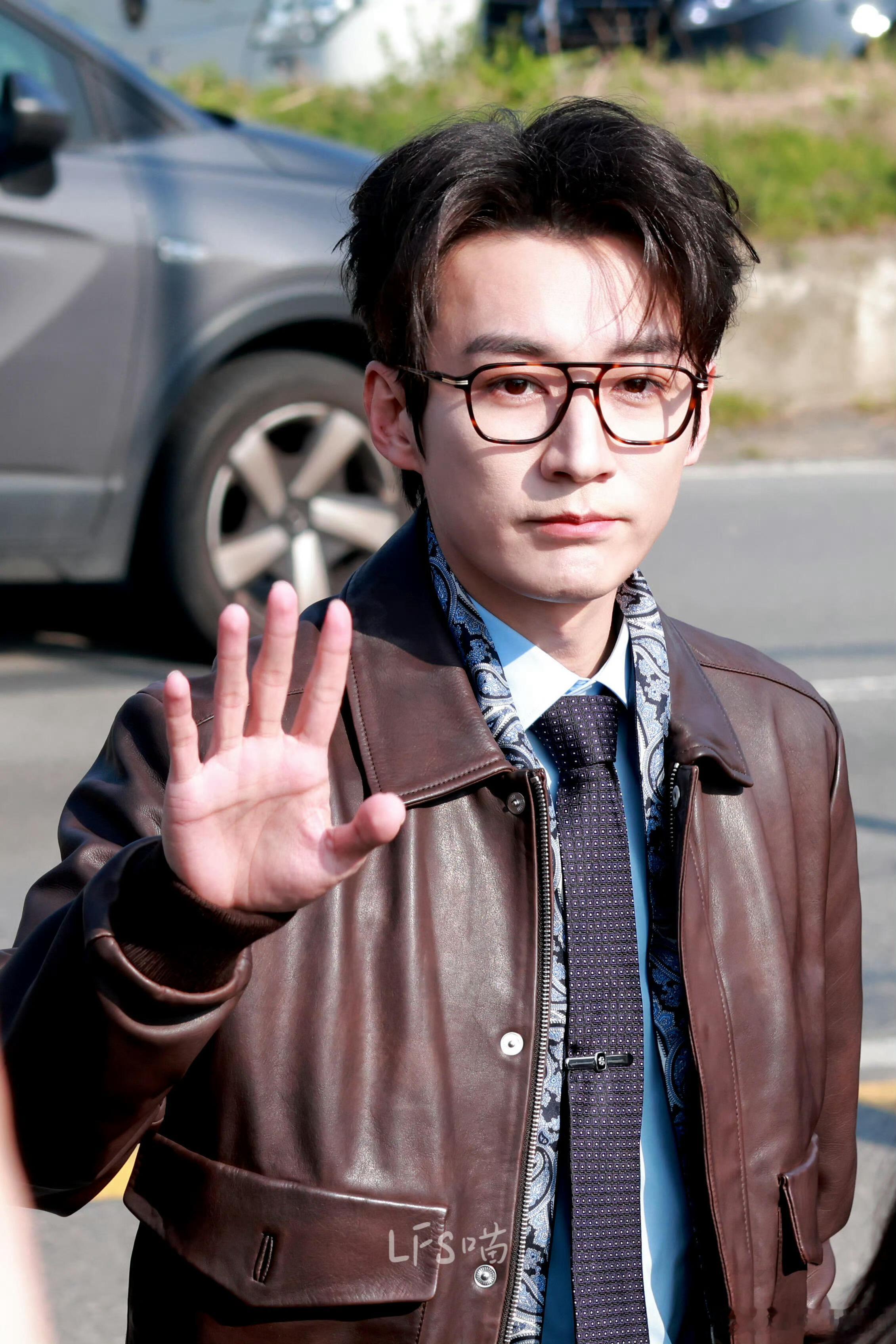 肖战的米兰时装周出发AllBlack造型:暗纹老花风衣,搭配抢眼的马衔扣装饰腰