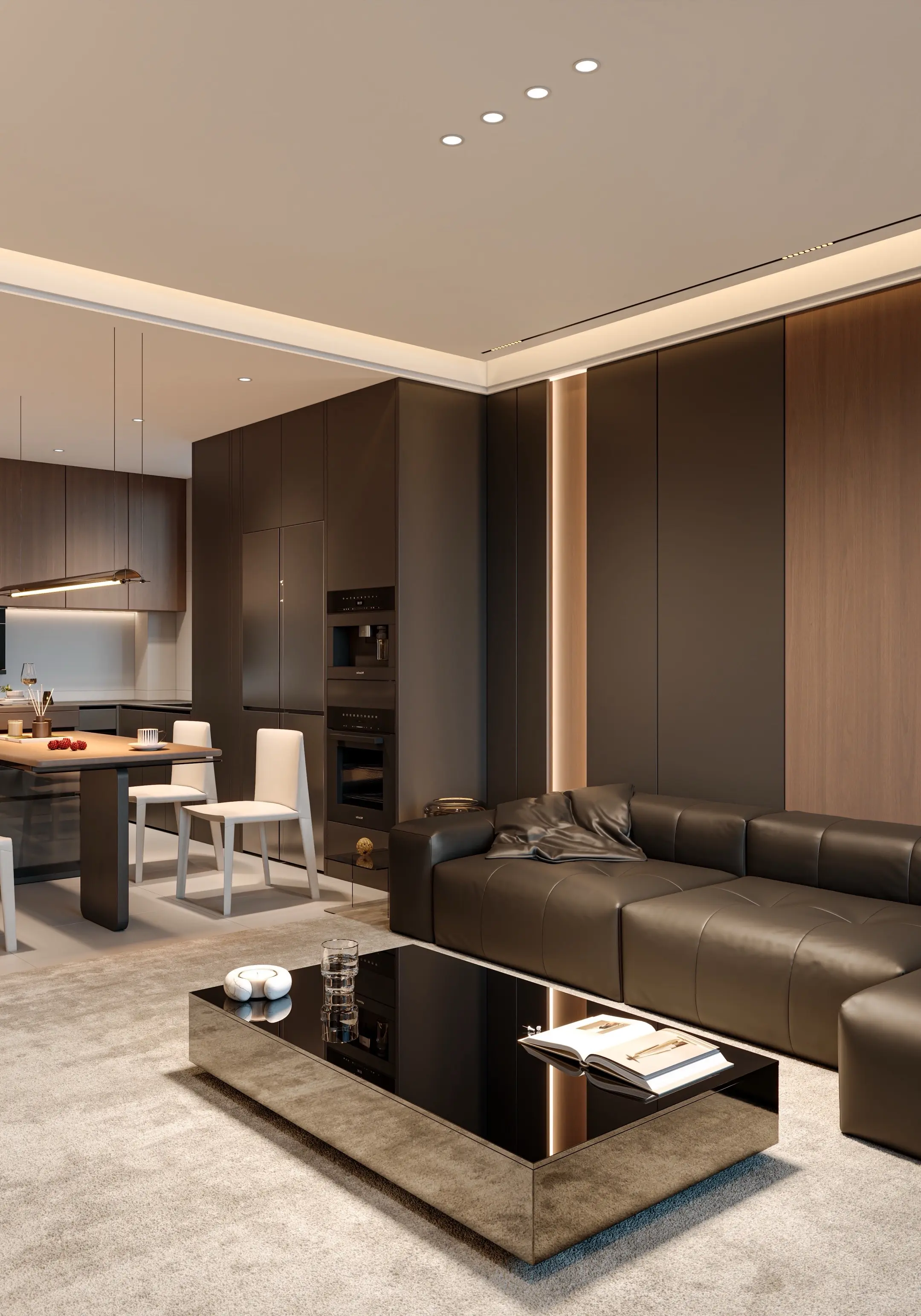 • 𝑳𝒀 𝑫𝑬𝑺𝑰𝑮𝑵 70平小户型也可以这么好看 🏠核心设计元素解析 (户型放在最后) .色彩与材质 主色调:采用深咖色、米白色和原木色作为主色调,色彩沉稳内敛,富有层次感。 .空间布局 。LDK一体化设计:客厅、餐厅、厨房(L:Living room, D: Dining room, K: Kitchen)采用开放式布局,视野开阔,动线流畅,增强了空间的互动性和通透感。 ◇功能分区:通过家具摆放和吊顶造型,在视觉上对各个功能区域进行了巧妙划分,既独立又统一。 .灯光设计 .无主灯设计:摒弃了传统的主灯,采用筒灯、射灯、灯带和吊灯等多种光源组合,实现了见光不见灯的效果。 。氛围营造◇通过不同色温的灯光(如暖黄的灯带),营造出温馨、舒适的居家氛围