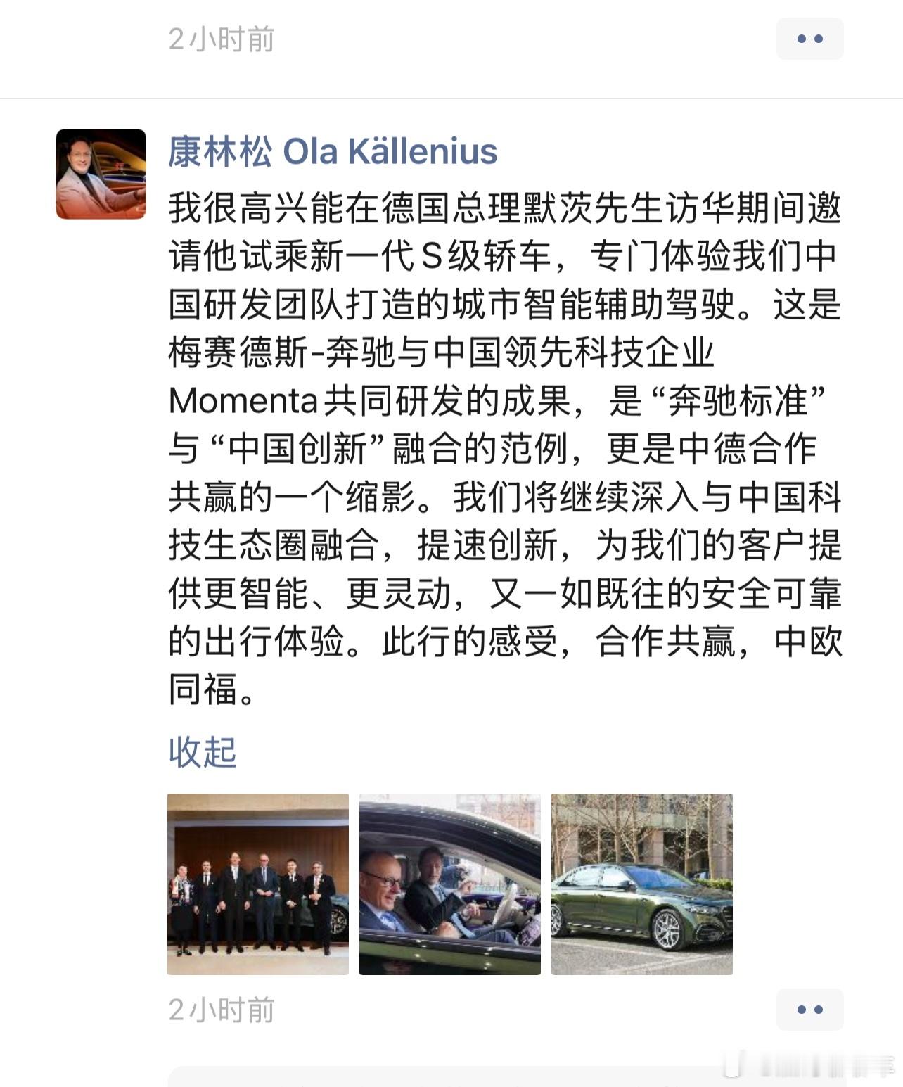 德国总理默茨访华,亲自体验全新奔驰S级,在奔驰全球CEO陪同下体验中德联合研发的智能驾驶。这不仅是一次试乘试驾,更是中德务实合作的最强表态:不脱钩、深绑定,德国豪华+中国智能,强强联手,共定义下一代高端汽车标准。