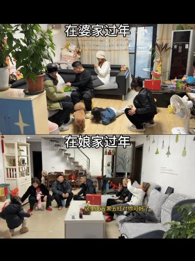 一女子晒出自己过年期间在娘家和婆家的对比图,同样的场景下却有着不小的区别,在婆家