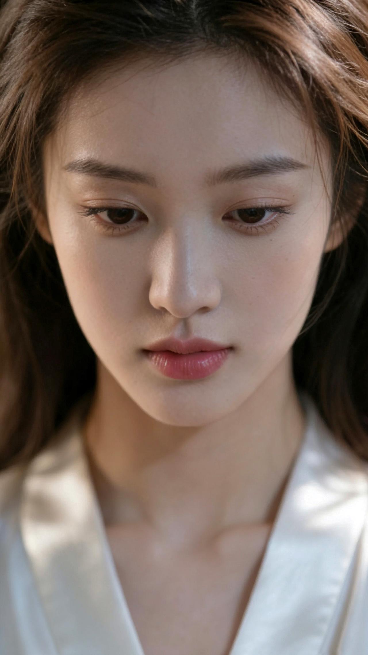 九帧同绘素衣温婉仙。棕乌发如瀑垂落,发丝轻拂脸庞。素白/银衣衬雪肌,V领柔滑泛光。星眸含情粉唇似瓣,鼻梁挺秀。深背景虚化衬静谧,东方古典美漫帧,一眼心动! 图片为Al辅助完成,请注意甄别!