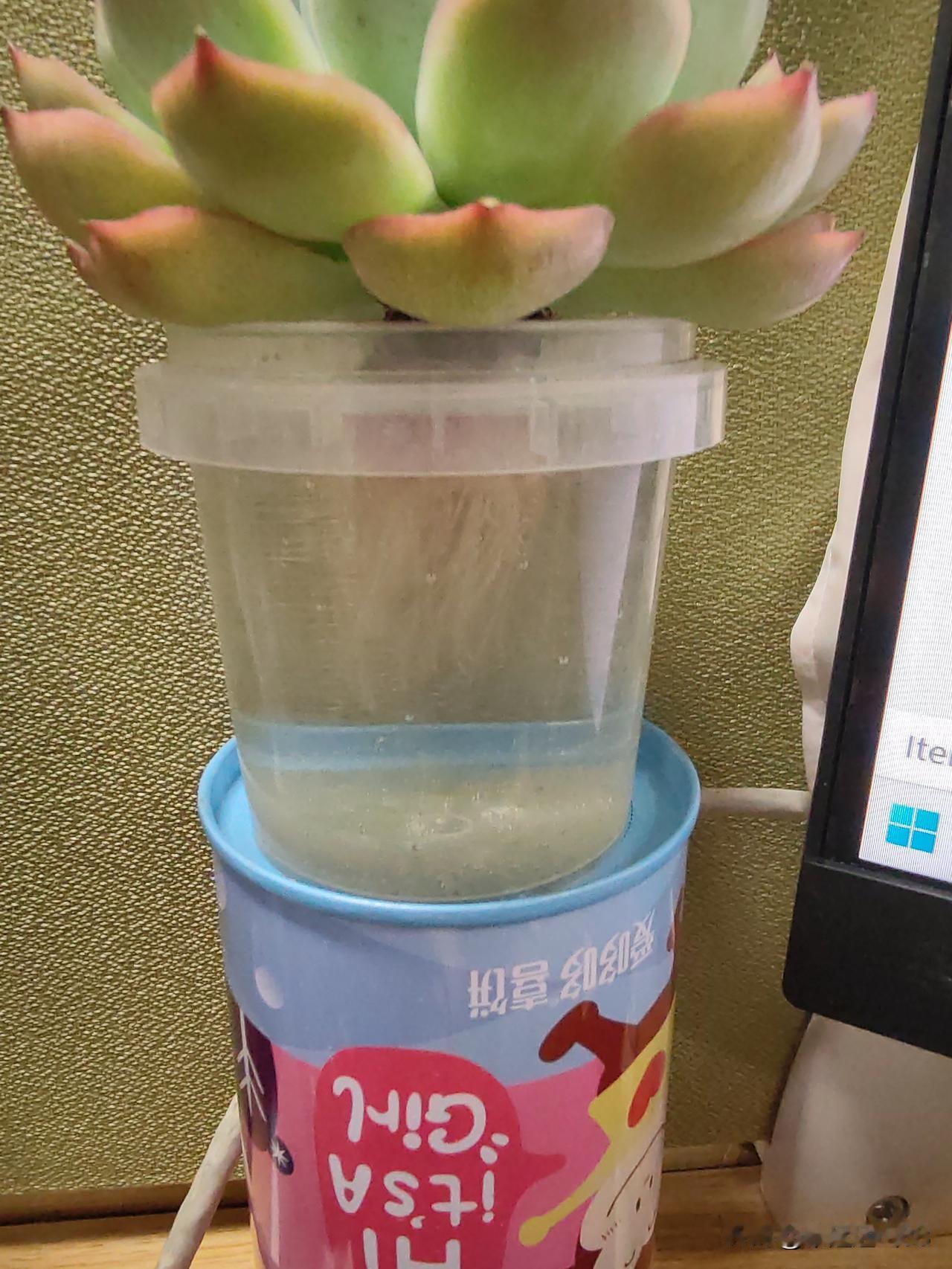 水培了一颗多肉,看起来像荷花,朋友买了太多种不下,送我的,还带着云南红。 在水杯里上架着,水刚好挨到主根一点点,20多天就长出了很多白色的气根。 拿到办公室想每天好好欣赏一番,又怕一下长徒了。看来周末要把它放出去晒太阳才行。 有没有水培过多肉的友友,适不适合呢?最后会长徒吗?还是会淹死呢 水培多肉花盆 多肉水培 水培多肉盆栽 云南养多肉 晒晒你家的多肉
