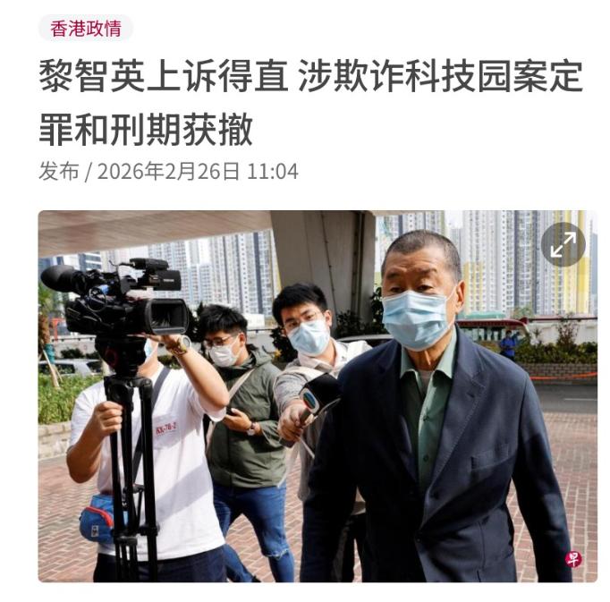 黎智英“上诉得直”定罪刑期被撤销,港府不服:接着告 2月26日,身在大牢里边的黎智英又不老实了,他的女儿前脚想道德绑架谷爱凌没得逞,后脚律师团就玩起了法律技术活儿。 2月26号香港高等法院这一判,欺诈案上诉得直,定罪和五年九个月的刑期给撤销了,看起来好像是赢了,但实际上这赢的有点虚,纯属法律条文上的技术性操作。 说白了,法院这次撤销定罪,不是因为觉得黎智英那21年公器私用、占着科技园便宜的事儿干得对,而是觉得当初租契合同里有些法律条文可能有点模糊,本着“疑点利益归于被告”的原则,给了个程序上的胜利。 港府这边反应也快,律政司立马就表态了,对判决“深表遗憾”,而且要研究判词,接着上诉。这意思很明白:一次技术性胜利不算赢,咱们法庭上再见真章。港府这脾气上来了,就是要跟你杠到底,反正正义不能就这么糊弄过去。 而且大家得搞清楚,黎智英身上背的可不止这一桩欺诈案。他因为违反《香港国安法》,串谋勾结外国势力、发布煽动刊物这些更严重的罪行,早就被定了罪,判了整整20年监禁。 这次欺诈案就算翻了篇,那20年的国安法大刑期可是铁板钉钉,一动没动。他该坐的牢一天也少不了,出狱的日子并不会因为这个小插曲就提前多少。所以啊,别看他这次在边角料案子上蹦跶了一下,主菜的大刑期还在后头等着呢。 所以整体看下来,这就是一场法律程序上的“小插曲”,改变不了大局。黎智英该承担的法律责任一点没少,港府维护法治的决心也一点没变。接下来无非就是双方在法律框架内继续过招,但最终,事实和法律会给出最公正的答案。
