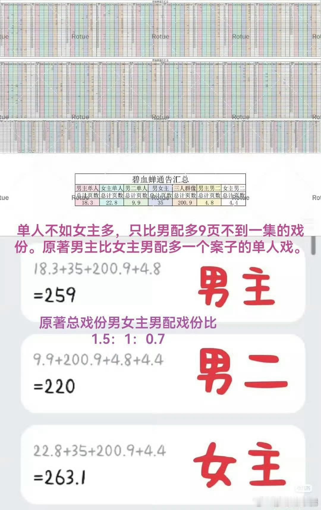 《碧血蝉》拉的这个表格是不是更实锤了确实给女主男二加戏了?根据原著,比例都快配平