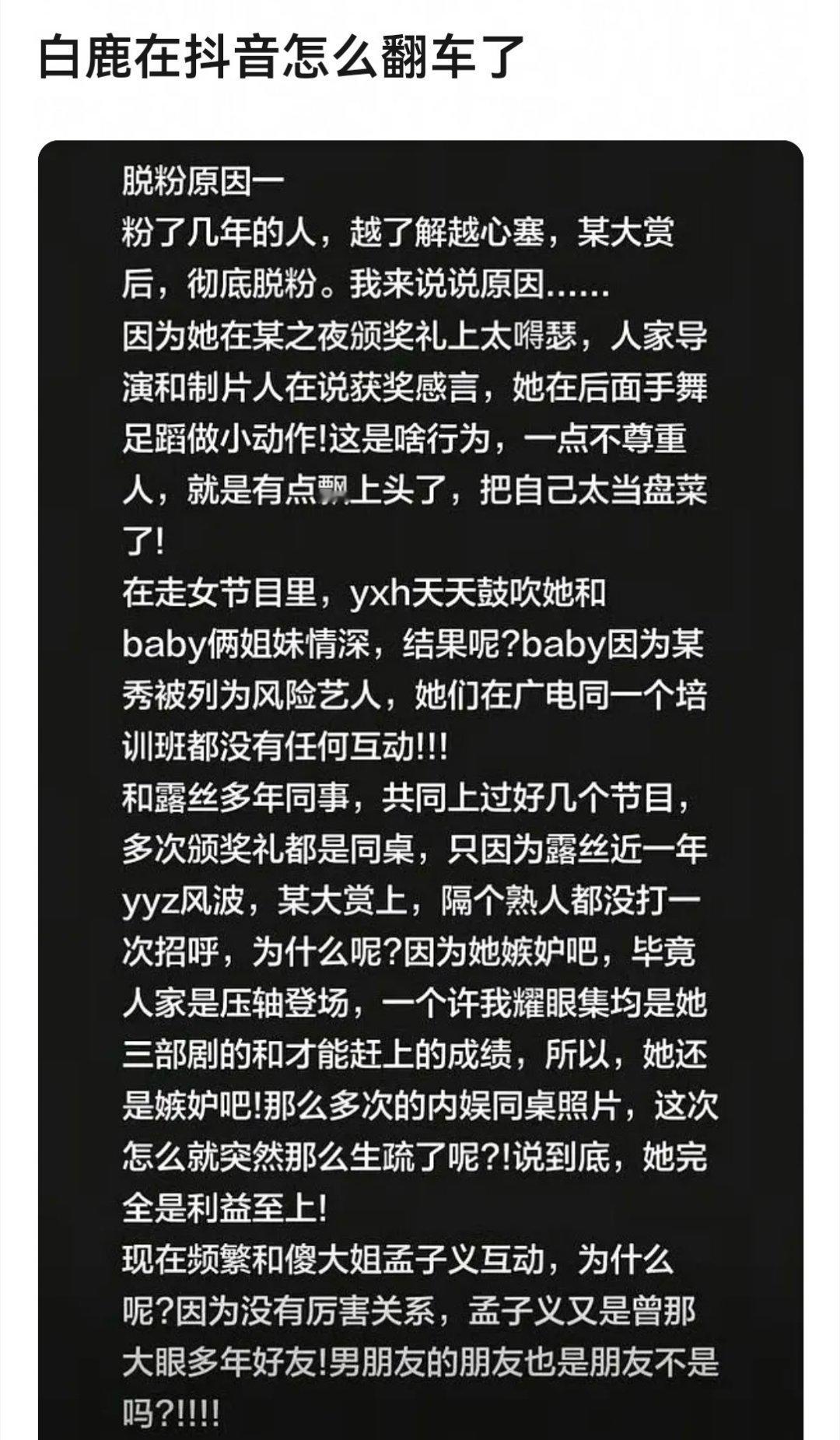 白鹿粉丝脱粉回踩