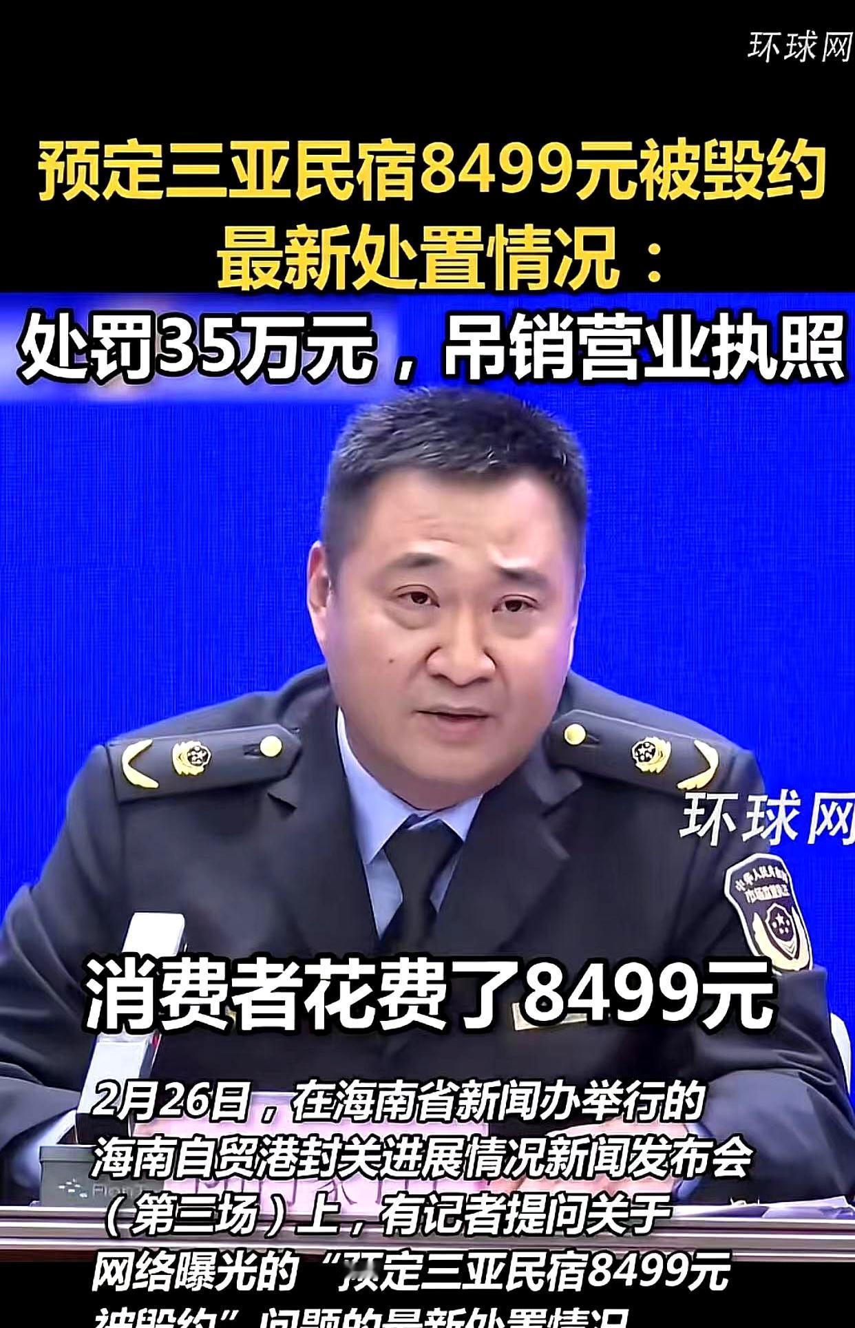 三亚直接开出35万罚单,理由是民宿毁约——订单才8499,罚款竟是其40倍。 力