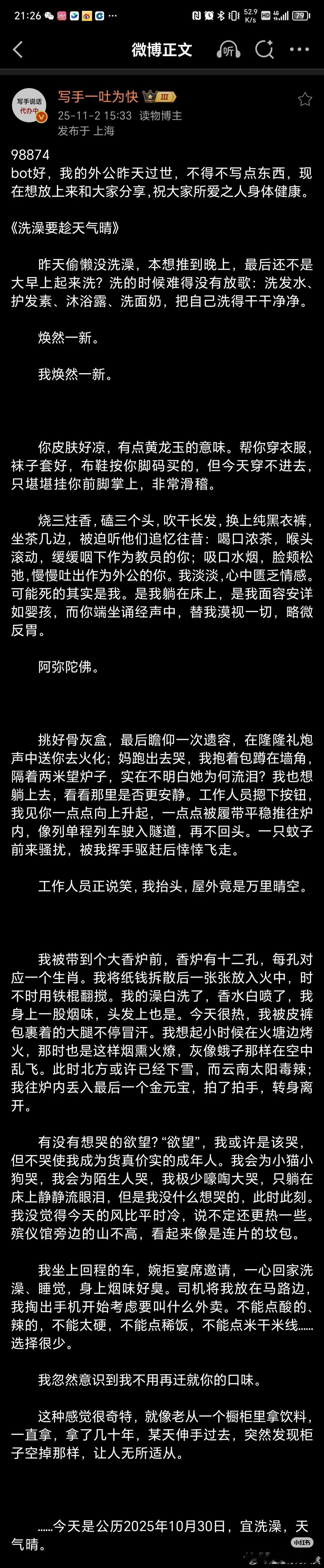 没看出来对外公的离去有什么悼念意味,全是必出金句的决心