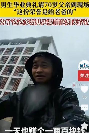 “这才是读书的意义!”近日,贵阳一大学本科男生“骗”农村70岁的老父亲来参加他的毕业典礼,他告诉老父亲必须家长签字,才能领到毕业证。怕老父亲不舍得花钱,他提前几个月开始送外卖攒钱,就想带老父亲来贵阳转一转。 “有人说,父母这一生最远的旅行,是送孩子去上学;孩子这一生最想兑现的梦想,是带父母看世界。” 前两天,贵州贵阳一则新闻上了热搜。一个叫杨国重的应届毕业生“骗”了自己七十岁的父亲来参加毕业典礼。 这场“骗局”,没有半点恶意,却把无数网友看哭了。 事情发生在2026年2月,正值贵州各地高校毕业季。杨国重是贵阳某工科大学的本科生,今年顺利拿到学位证书。 本来,毕业典礼只是一场仪式,但对他来说,这是送给父亲的一次迟到的旅行。 杨国重的家在云贵交界处的深山里,村子离县城有五十多公里。父亲老杨,是土生土长的山里人,一辈子守着几亩薄田。 70岁的人,手脚还利索,却从没坐过地铁,也没见过省城是什么样。 这四年里,儿子在贵阳上学,每次放假回家,他都劝父亲来学校看看。老杨每次都笑笑说,地里忙、舍不得花那点路费。 对于他这样一辈子精打细算的农民来说,几百块钱的来回车票和住宿,是一笔心疼的开销。 直到毕业前夕,杨国重心里越来越不是滋味。他想让父亲看看自己奋斗四年的地方,也想让父亲亲眼见证那张凝结着几代人希望的毕业证。于是他动起了心思。 他从大三开始送外卖攒钱,每晚骑着电动车穿街过巷,风吹雨打,硬是把钱一点点攒出来。 他知道,如果直接说想请父亲来,肯定又被拒绝。 于是,他想了个“善意的谎言”——告诉父亲,学校规定家长必须签字才能领取毕业证,还特意打印了一张假表格。为了让父亲放心,他又说学校有交通补助,吃住都不用花钱。 那天,老杨背着洗得发白的小布包,从乡里的客运站上车。七个小时的车程,他坐得笔直,手里还攥着那张所谓的“学校文件”。 等车子驶进贵阳,窗外的高楼越过了山线,他的眼神里,藏着拘谨,也藏着一种第一次见世界的好奇。 车站出口,杨国重远远看见父亲,那一刻他忍不住红了眼。他说父亲看起来比去年又瘦了,背有点驼,但脚步依旧稳。 第二天的毕业典礼,杨国重专门给父亲准备了一套崭新的学士服。父亲穿上那身黑袍子显得有些局促,嘴里不停念叨“太新鲜了”。 当主持人念到“杨国重”时,他轻轻推了父亲一把——让父亲上台领证。全场掌声响成一片。 台上的老杨两手抖得厉害,接毕业证时手指都在微微颤。他眼眶湿润,嘴角带着自豪而又克制的笑。 那一刻,所有在场的老师和同学都安静了几秒。现场不少人录下这暖心一幕,短短几小时就上了各个平台热搜。 典礼结束后,杨国重带着父亲在校园里转。他让父亲看自己睡了四年的宿舍楼,看图书馆、食堂,还有那条自己每天送外卖经过的坡路。 中午,他们去吃了贵阳的特色烤鱼。老杨第一次坐在装修精致的餐馆里,拿着手机拍照。儿子教他扫码点餐,他认真地点头。 饭后,儿子又带他坐上地铁。父亲全程紧握手扶杆,嘴里小声嘀咕“这车真稳啊”。 从地铁出来,正好是黄昏,晚霞打在他们脸上,像是父子俩都被世界温柔地裹住了。 而最让人泪目的,是临别那一刻。 车站检票口,老杨背着那只布包。临上车时,他回头望了一眼儿子,说了一句:“爹这辈子,值了。” 就是这样一句朴实的“值了”,仿佛把他一生的辛劳都化作了释然。 这场温情的“骗局”,没有轰动全国,却稳稳击中了很多人的心。 毕业典礼那天,学校官方账号也发了消息,称这是“最有温度的一场仪式”。 评论区里,很多网友留言说,看到父子俩的合照就想起自己还没实现的心愿——陪爸妈去一趟他们没去过的地方。 按照2026年初《人民日报》对中国教育部最新发布数据的报道,我国农村本科生比例近年稳步上升,2025年已达到全国普通高校学生总数的28.7%,其中西南地区增长最快。越来越多来自山村的孩子,正通过教育走出大山。 但与此同时,也有无数个像老杨这样的父辈,一生的视野被土地限制,却依然把读书当成孩子改变命运的唯一希望。