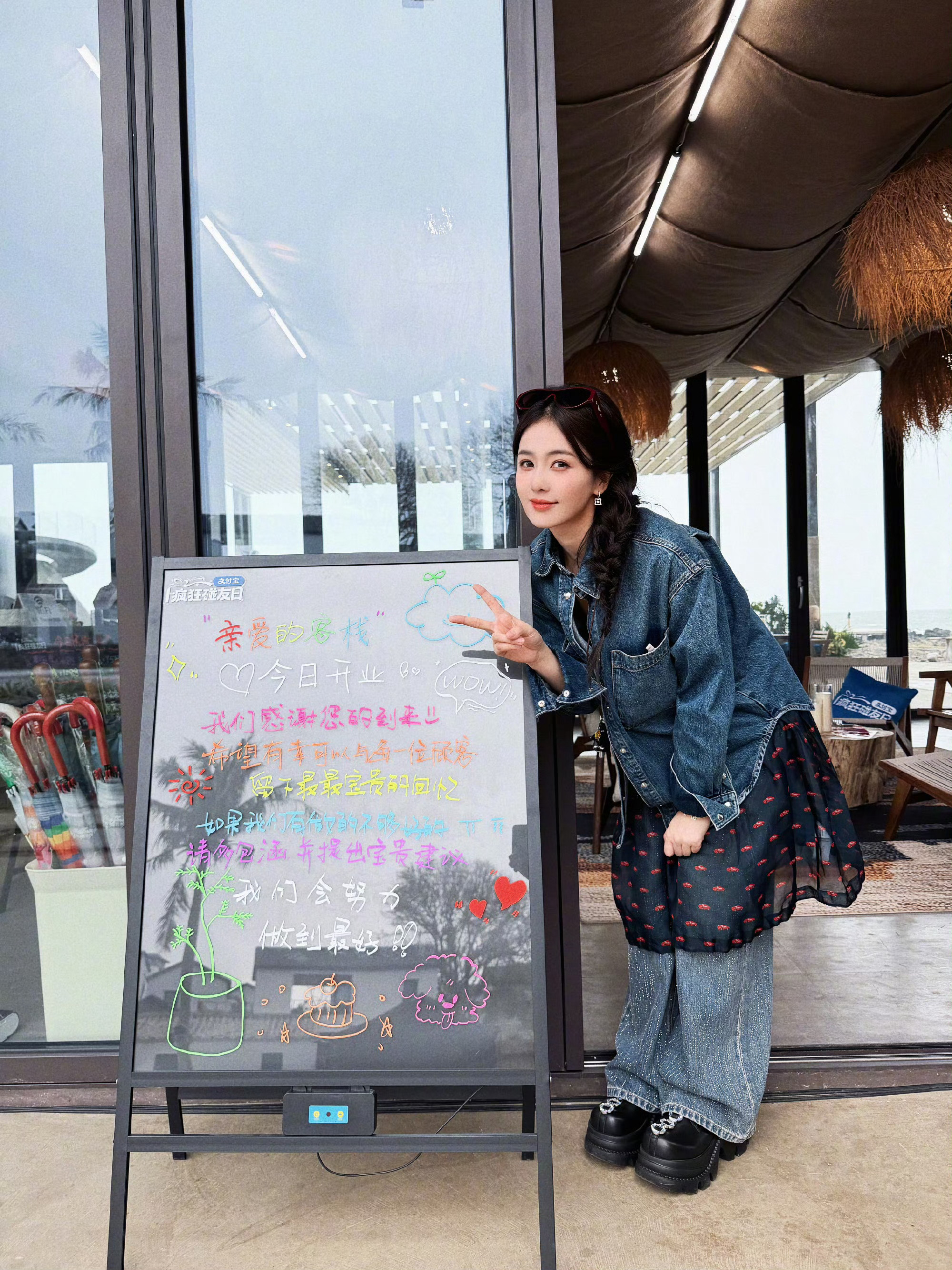 白鹿真帮手假客人 这就是熟人局的快乐,白鹿本来是来评价大家服务的客人,结果刚进门就被套上围裙开始干活,采购画板报都干上了!亲爱的客栈