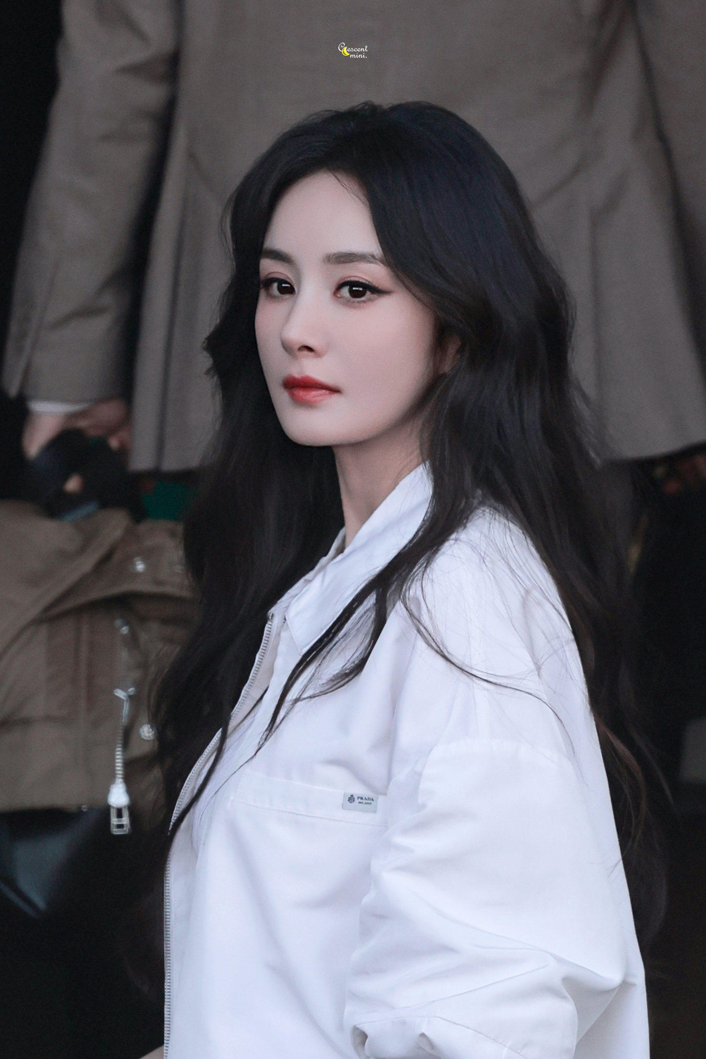 Prada代言人杨幂杨幂第三次前往米兰时装周~出发+米兰探店的牛仔外套和内搭,