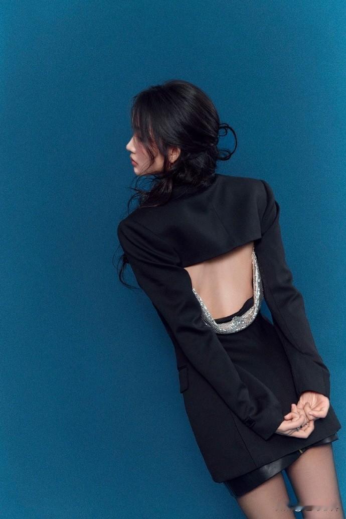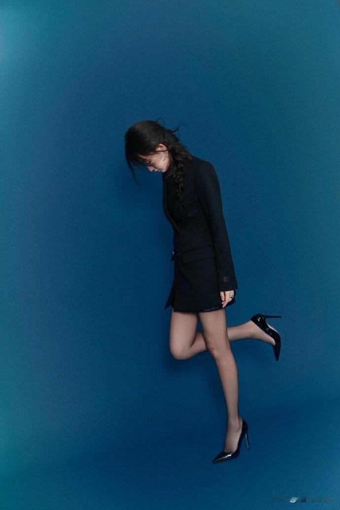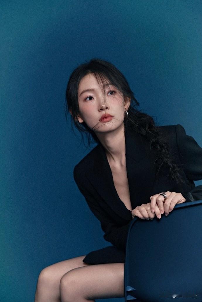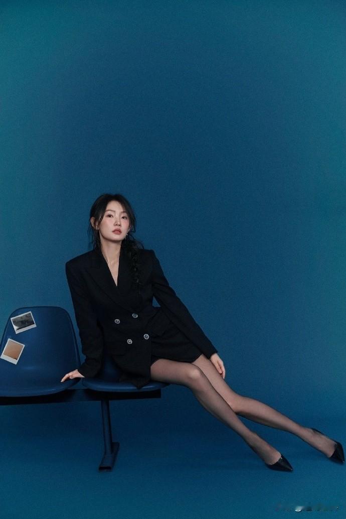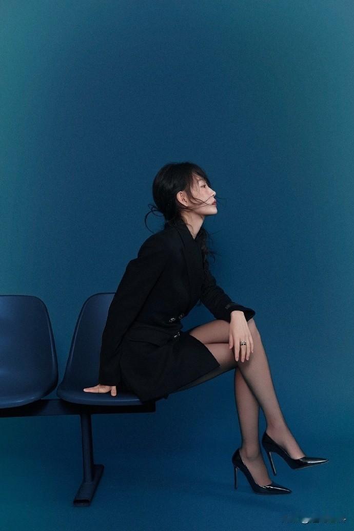 周依然,西装高跟鞋,丝袜点缀,柔美精致的姿态。