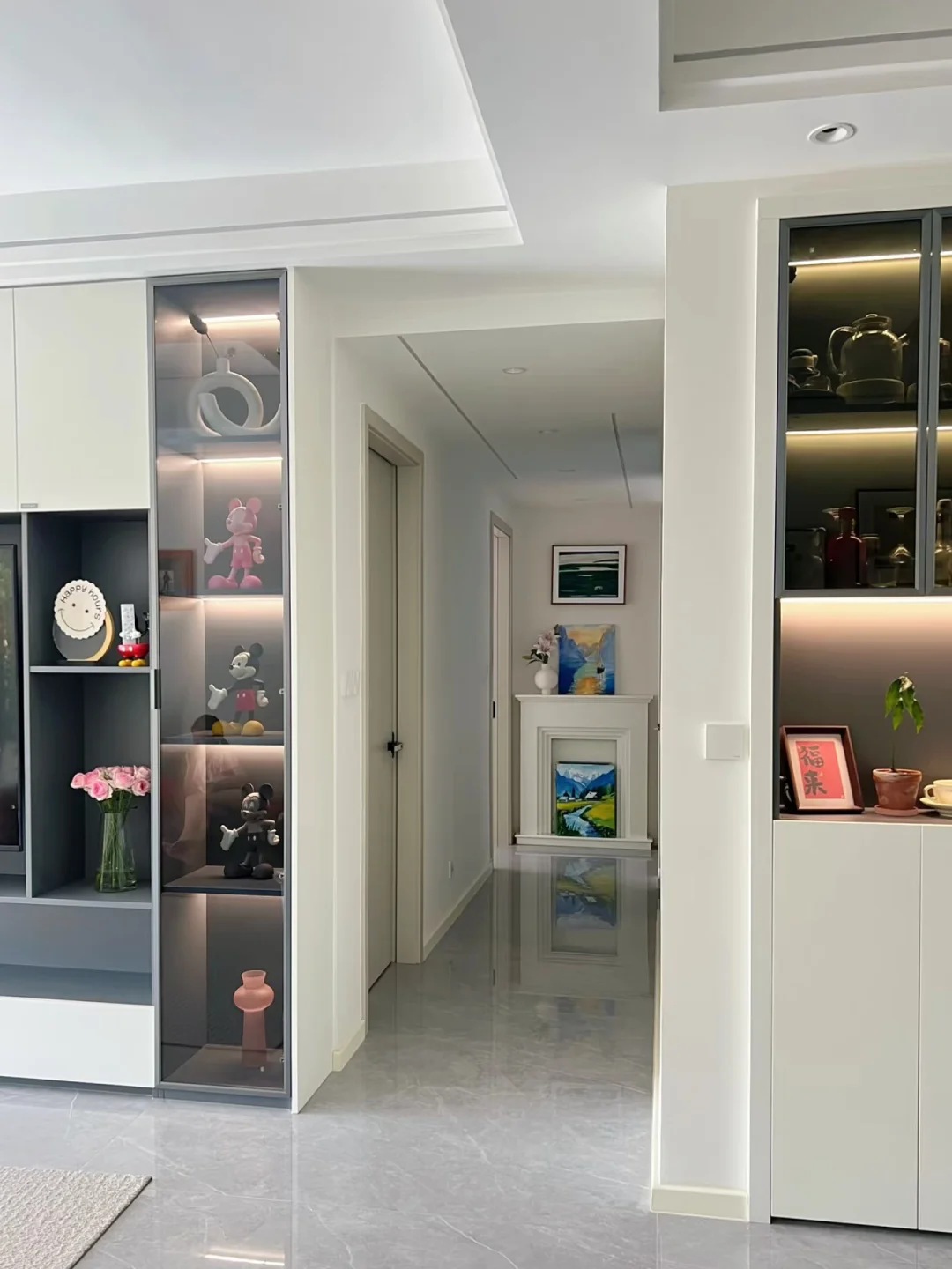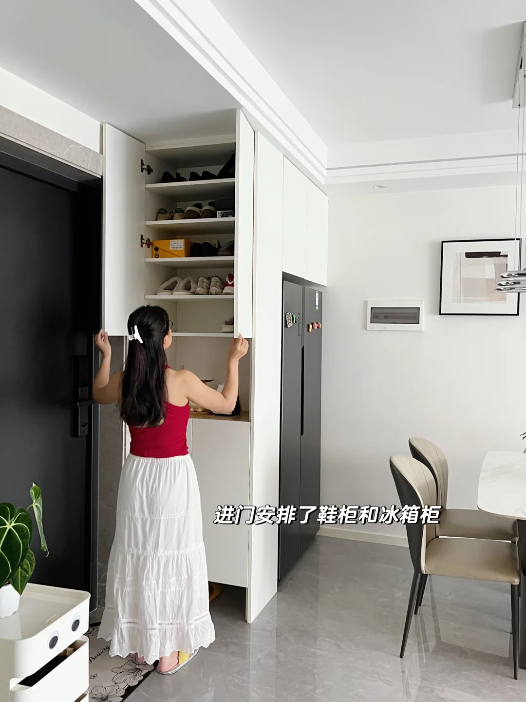 巴掌大的家怎么了?我偏要打满柜子来~😤 不想入住后杂物没地方收纳 装修再好看也白搭! 真实感受: ▫️入住2年 真正发现有娃的家不需要富丽堂皇 ▫️只需要干干净净 整整齐齐就足够了 ▫️所以收纳才是有娃家庭装修第一需求! ▫️在装修的时候 幸好把收纳作为第一装修需求 🏡入住2年的小家 还是依然整洁干净 🏠套内93 |3室1厅|双阳台|进门就是餐厅 厨房 针对我🏡的户型和家庭需求做了以下收纳设计 ▪️我家客厅开间 3.9 做了3.7米长满墙电视柜 ▪️餐厅开间小 厨房对面做了2组餐边柜 ▪️进门安排了鞋柜和冰箱柜 ▪️双阳台 阳台一侧做了一组书柜 孩子们的阅读区 阳台另一侧是一组洗衣柜 上南安排了收纳柜 ▪️15平主卧做了L型衣柜 解决卫生间对着床 ▪️9平方次卧做了一组衣柜 ▪️7平方儿童房也只做了一组衣柜 ▪️4.5平方厨房做了上浅下深的U型橱柜 ◎备注:我家所有柜子都没有安装反弹器大家也 不要安装 很容易坏 很鸡肋的玩意! •✅以上就是今天的分享 有喜欢我家柜子的姐妹 可以直接抄作业🌟