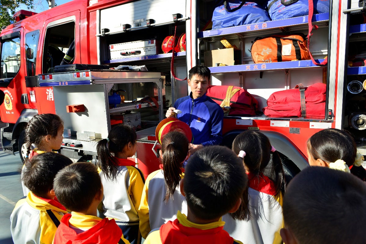 银河消防救援站的指战员走进校园,现场演示高压水枪灭火、破拆救援等专业项目,并指导学生近距离接触消防器材,体验消防工作。同学们为消防员献上亲手制作的刻纸作品,表达对“最美逆行者”的崇高敬意。