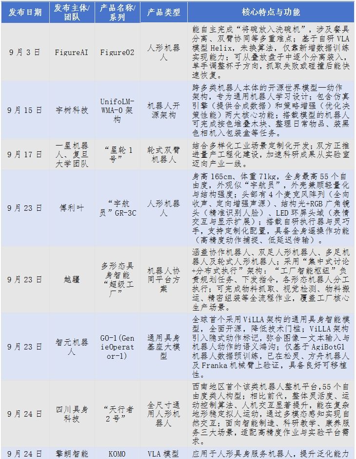 2025年9月,机器人产业加速从技术探索迈向规模化落地,呈现“技术攻坚、资本聚焦、场景深化”的核心特征。
