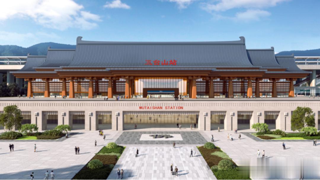 五台山站建筑面积1.49万平方米、站场规模2台6线,是雄忻高铁山西段新建规模最大站房。