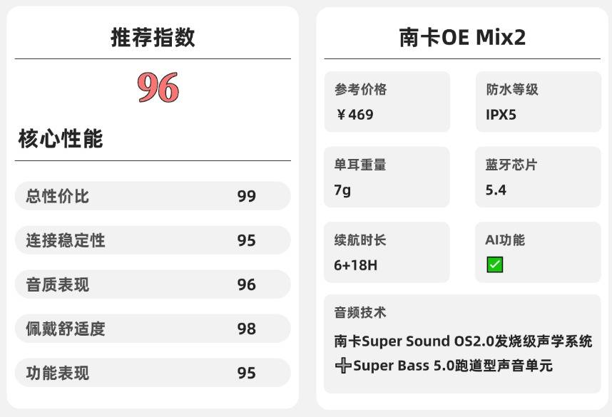 推荐一:南卡OE Mix2(469元)