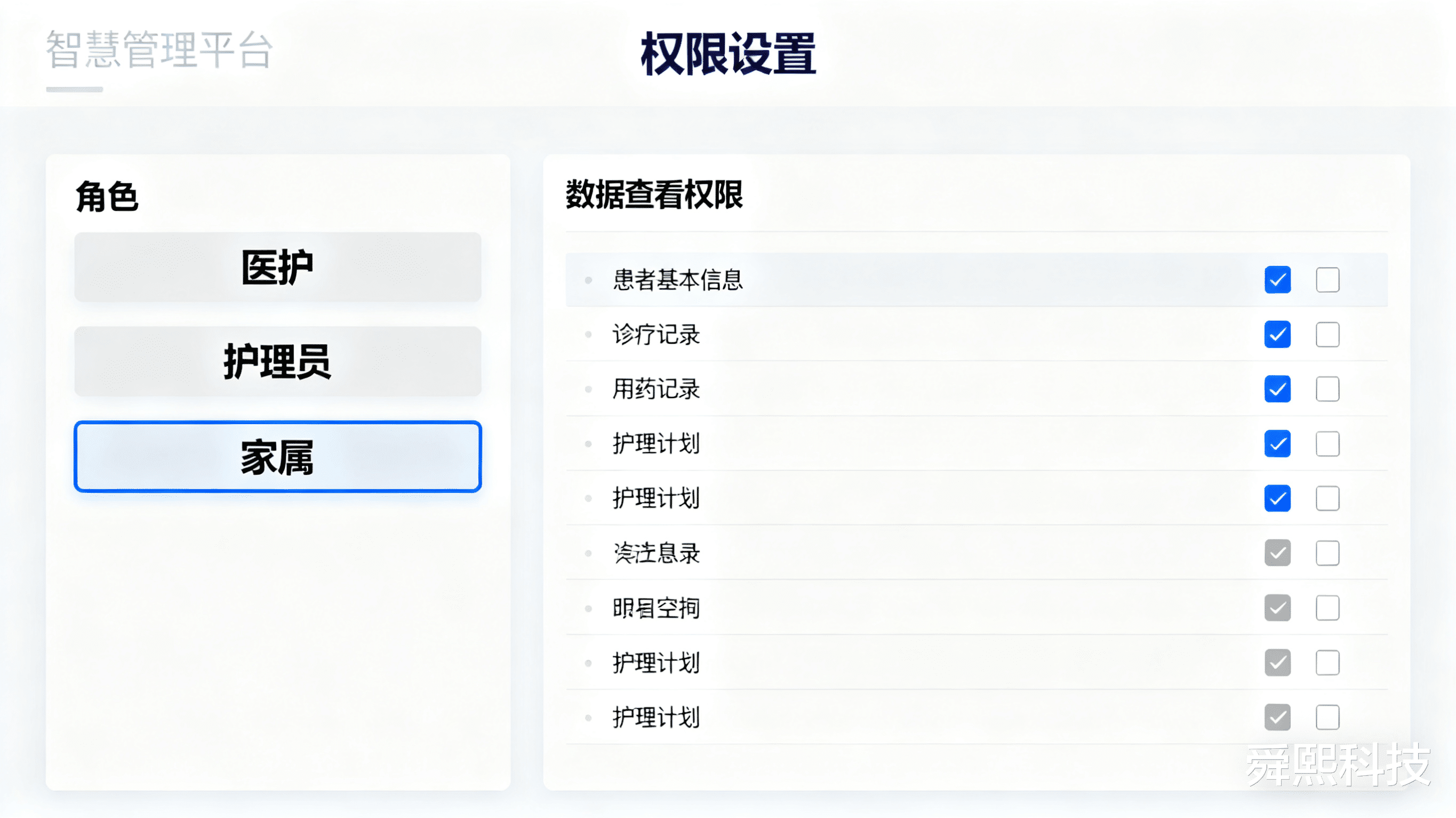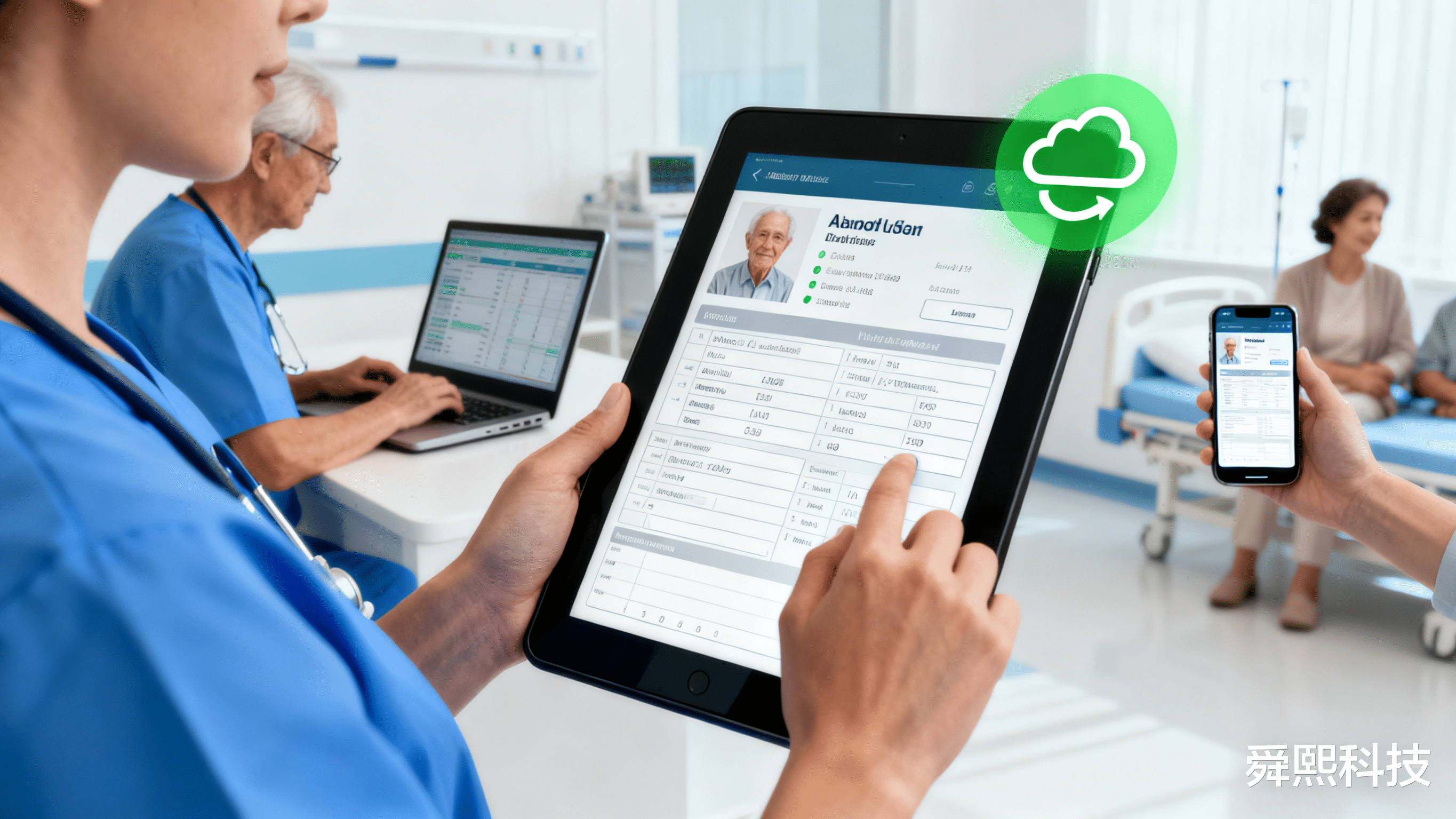 舜熙科技的智慧管理平台,从根源上破解了这些难题。平台以“无纸化办公”为基础,实现了所有业务流程的线上化重构,打造“数据一次录入,全场景复用”的高效模式。老人的身份信息、家属联系方式、既往病史、用药记录等所有关键数据,均可通过平板终端一键录入并存储于云端。医护人员、护理员、家属只需经过权限授权,就能实时查看最新信息,彻底告别“翻档案、找单据”的低效场景。这种变革不仅让信息传递效率提升数倍,更从根本上降低了信息错漏风险,为精准服务奠定了数据基础。