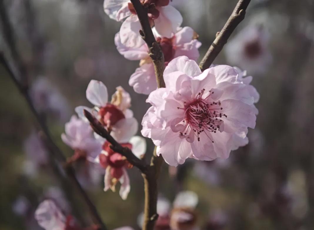 宫粉、朱砂、绿萼梅争奇斗艳