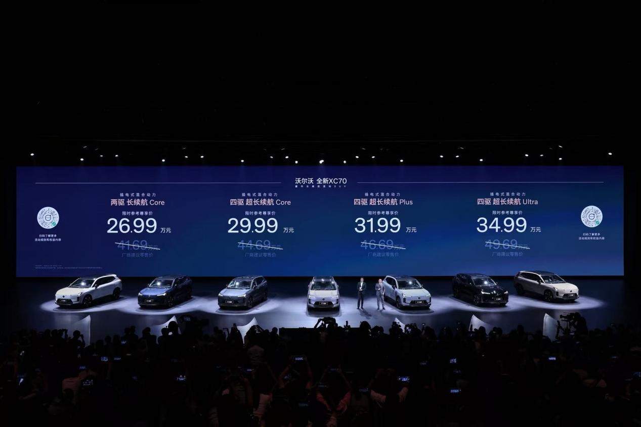 9月26日,沃尔沃全新XC70于上海西岸国际会展中心盛大上市,新车共推出4个配置版本。这款被誉为“豪华超混第一车”的战略车型,以限时26.99万元起的尊享价及至高6万元购车权益,在填补XC60与XC90产品矩阵空白的同时,更凭借豪华中大型SUV市场首款超混产品的全能实力,向市场展现了沃尔沃在电气化时代的技术底气与用户诚意。