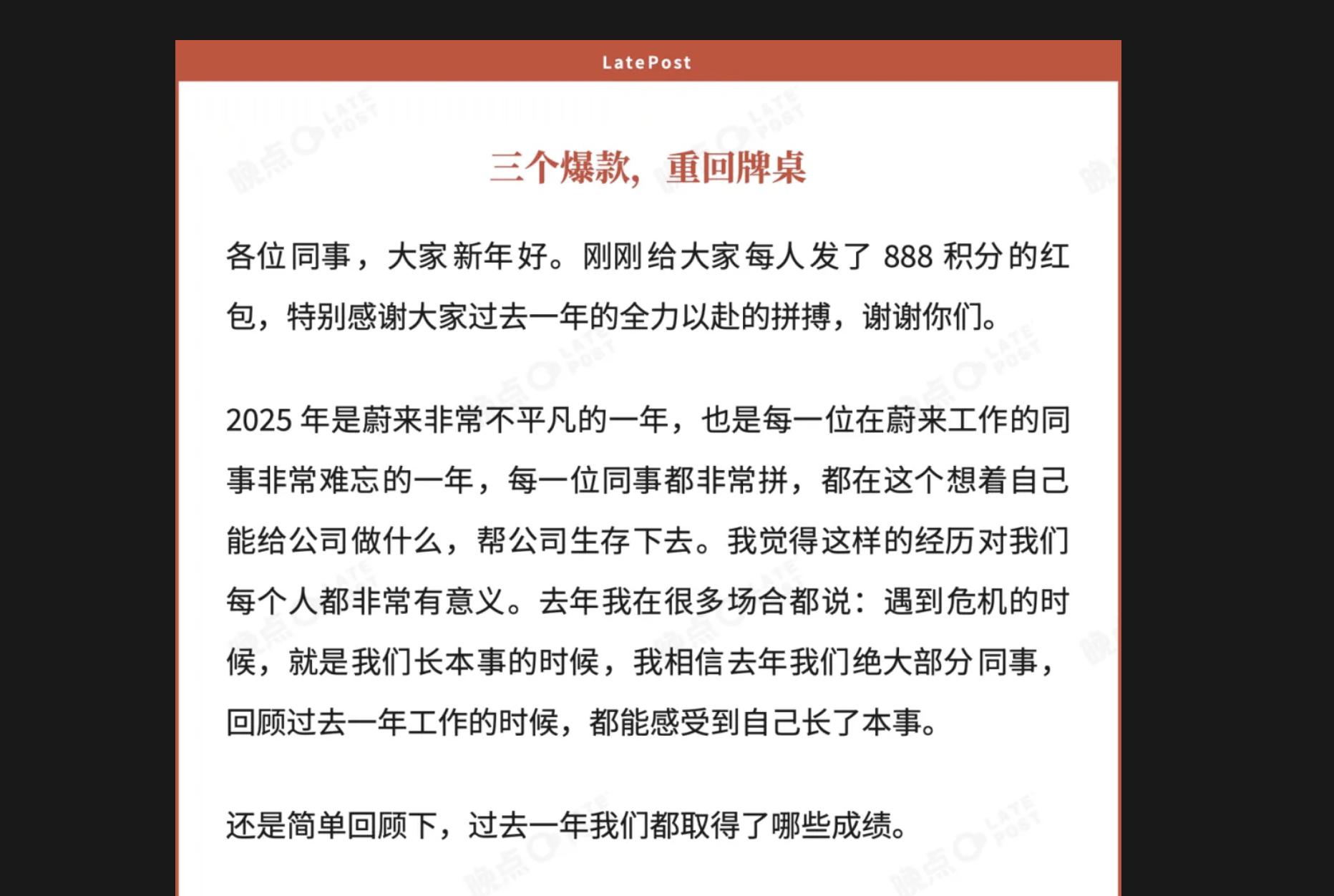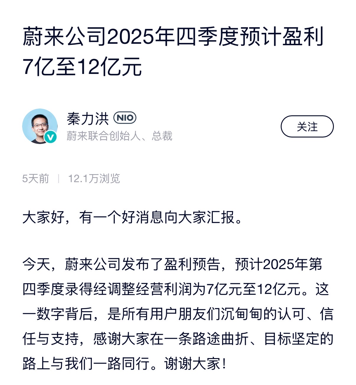 2026年,我大概率不会经常吹蔚来了。因为2025年唱衰蔚来的人多,我实在心中愤慨,我愿意为我喜爱的品牌发声。而2026,现在的蔚来太红了,吹蔚来的人太多了,我不愿意去附和。车评人也是人,也有心头爱。而我,就是很喜欢李斌,就是很看好蔚来。