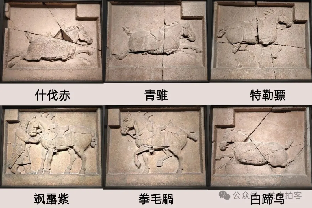 昭陵六骏的名字分别叫什伐赤、青骓、特勒骠、飒露紫、拳毛騧、白蹄乌。1914年,飒露紫和拳毛騧被盗,现藏于美国费城宾夕法尼亚大学博物馆。