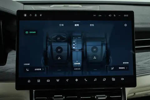空间够了,座椅舒服度也得跟上,毕竟老人孩子坐车时间长了容易累。试驾当天我连续开了2个多小时,前排Nappa真皮座椅摸着手感软,坐进去包裹性很好,腰部和腿部支撑恰到好处,不像有些车坐久了硌得慌。虽然当天温度不高,我还是试了座椅通风,后背全程干爽,夏天开车应该不会闷汗;切换到加热模式,几分钟就暖和了,冬天用着舒服。中途换副驾体验“女王躺”,280毫米电动腿托拉出来,座椅调到56度躺角,整个人半躺着,长途坐车肯定不累。销售说二排也有加热、通风和按摩功能,虽然这次没试,但光前排和副驾的表现,我对家人的乘坐体验已经很有信心了。