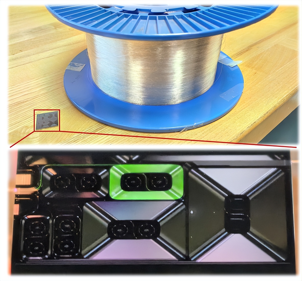 图丨掺锗二氧化硅新质光子集成平台(片上光纤)效果图(来源:受访者)