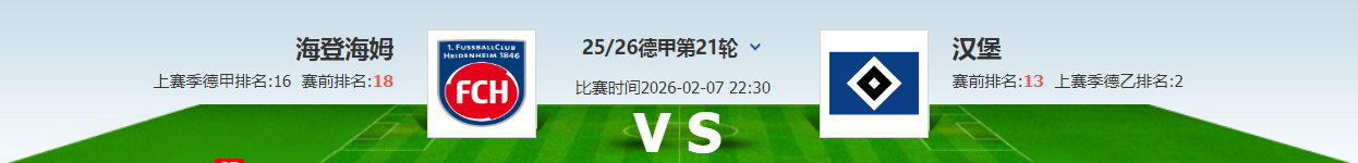汉堡自升入德甲,两队一共交手两次,海登海姆两战都输了。海登海姆由于近期连败,积分也是垫底,让本场球队的热度不高。从赛前的态度看,各方对于客场的汉堡的认可度只有一小步的认可,态度有点不够坚定。汉堡本赛季客场表现实在拉垮,海登海姆为了保级,本场坐镇主场势必会全力以赴。综合以上分析,本场看好主场的海登海姆至少保持不败,细节如能21 11 22更好。