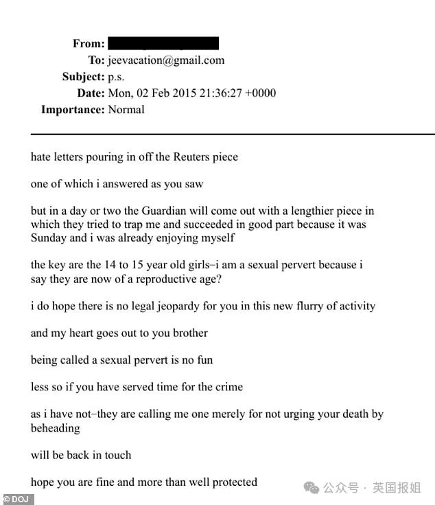 按理说,把这些邮件的收件人和发件人公开出来完全是合理的。但不知道为啥,司法部依然选择了隐藏...