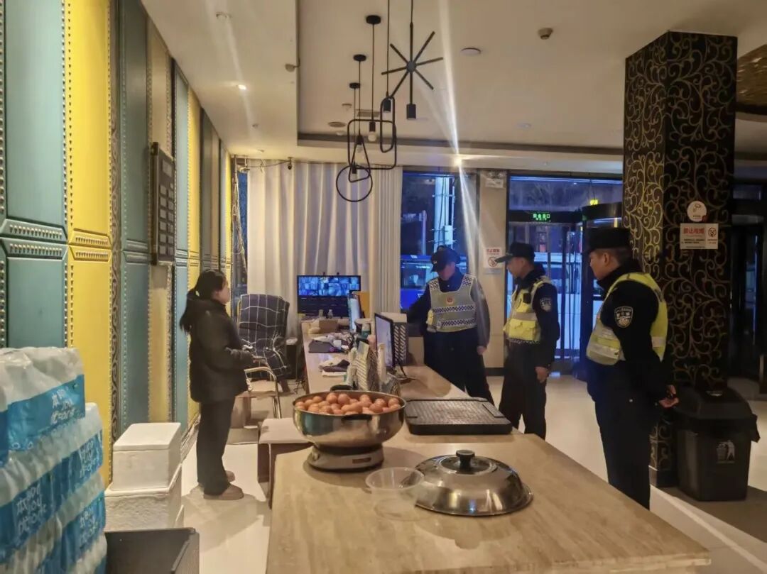 行动中,民警通过“地毯式”“拉网式”检查,紧盯娱乐场所、宾馆酒店、茶楼棋牌、网络竞技及“九小场所”等治安要素复杂区域,全面排查各类治安隐患和违法犯罪线索。在宾馆酒店,民警重点核查“四实登记”及未成年人入住“五必须”等要求落实情况,仔细核对入住人员、从业人员信息,严查无证入住、一人登记多人入住等违规行为,从源头防范各类违法犯罪活动;在网络竞技场所,民警重点检查实名认证系统及未成年人禁入标识,严防网络赌博、诈骗窝点滋生。针对“九小场所”消防安全,民警重点检查消防设施设备是否完好有效、疏散通道和安全出口是否畅通、电气线路铺设是否规范、有无违规存放易燃易爆物品等情况,对检查中发现的消防设施不完善、疏散通道堵塞等顽疾,民警当场下达整改通知书,责令相关单位限期改正,切实将安全隐患消除在萌芽状态。