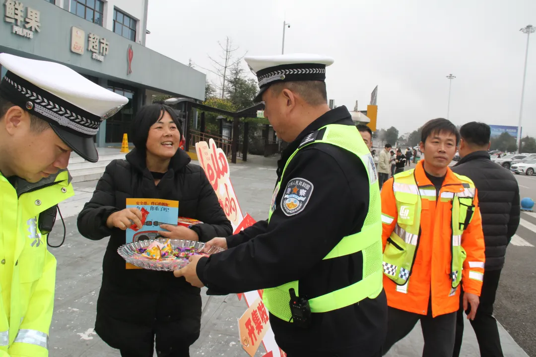 活动中,民辅警通过发放交通安全宣传资料、现场讲解、答疑解惑等形式,向过往司乘普及超速、超员、疲劳驾驶、酒驾醉驾、占用应急车道等违法行为的危害,重点讲解冬季高速行车注意事项、恶劣天气应对、事故快处快撤流程。同时设置便民服务点和事故快处点,在服务点设置热水、应急药品、方便面、路线指引、车辆简易检查等暖心服务,同时向回家过节群众发放春联、中国结、福字、糖果等节日礼品,用实际行动传递交警温度。