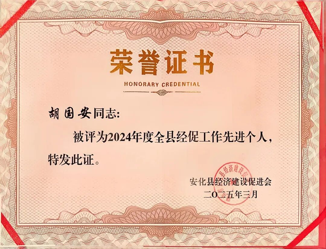 2025年3月15日,深圳市安化商会2025年年会暨大湾区“安化黄精之夜”在深圳隆重举行。深圳市安化商会荣誉会长、长沙市安化商会会长、绿之韵集团董事长胡国安荣获“2024年度经促工作先进个人”,并围绕招商引资、产业发展等方面积极建言献策,现场气氛热烈活跃。