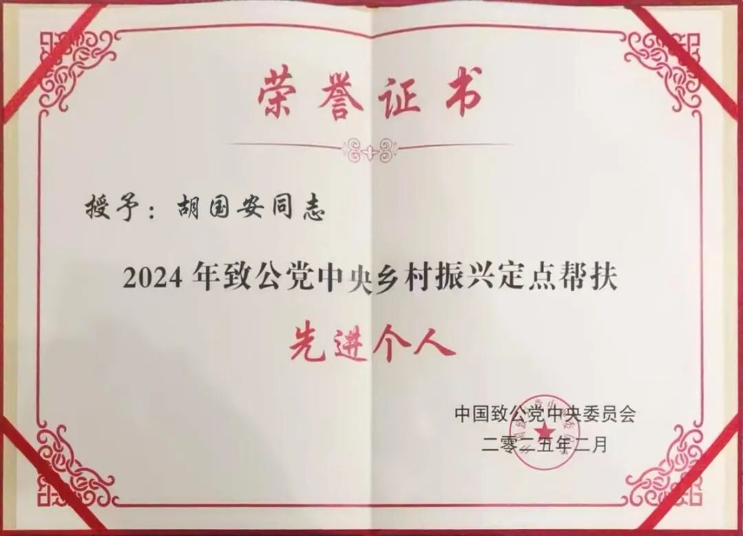 绿之韵集团董事长胡国安荣获“2024年度致公党中央乡村振兴定点帮扶先进个人”荣誉称号