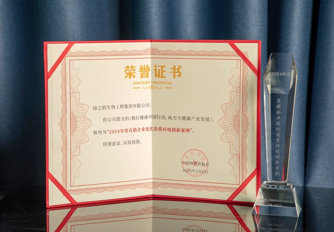 2025年3月12-13日,绿之韵集团总裁劳嘉受邀参加直销行业优化消费环境3·15宣传活动和价监竞争(规直打传)与保护消费者权益圆桌座谈会,并入选“2024年度直销企业优化消费环境创新案例”。她表示,公司将继续坚持“以产品为导向”的发展理念,为行业以及中国大健康产业的发展添砖加瓦。