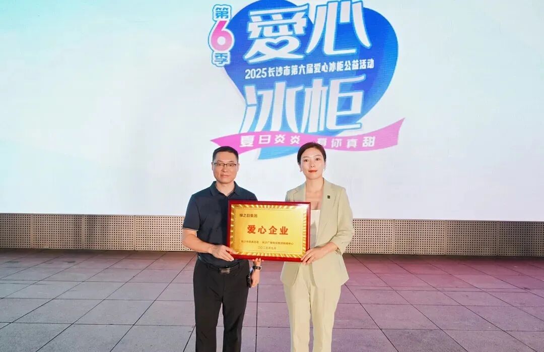 2025年7月25日,长沙市第六届爱心冰柜公益活动温情启幕。长沙市人大代表、湖南省慈善总会副会长、绿之韵集团董事长胡国安出席,绿之韵集团常务副总经理、湖南省绿之韵公益基金会秘书长蒋文带领绿之韵爱心志愿者参加活动,为清凉接力。绿之韵集团被授予“爱心企业”奖牌。