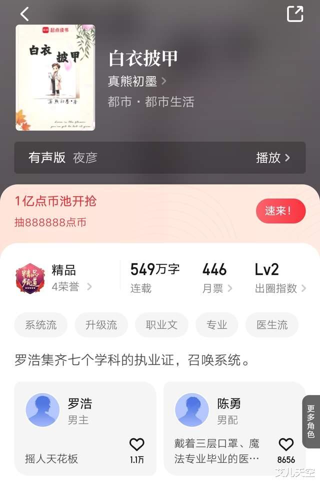 医生职业文现在热度回落,最近确实没看到有成绩特别好的作品冒头。