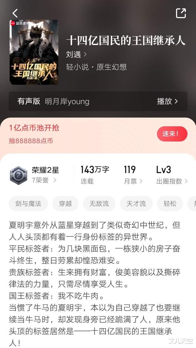 刘遇作品,大学生主角跟朋友去泰国旅行,刚下飞机就被敲了闷棍,再醒来已经身穿智慧生命头顶身份标签的奇幻世界,自己头顶一个十四亿国民的王国继承人标签。