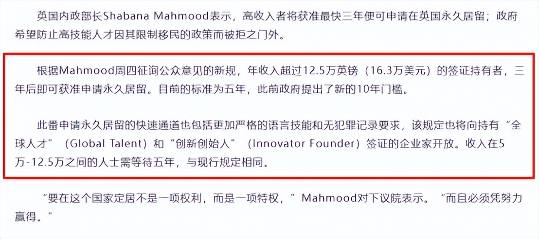 虽然关闭了黄金签证,但是却推出了快速永居的通道,一些年收入大于12.5万英镑的拥有技能的高质人才,可以通过在英国以工作签为英国做贡献的方式,最快三年左右就能获得永久居住的权利。