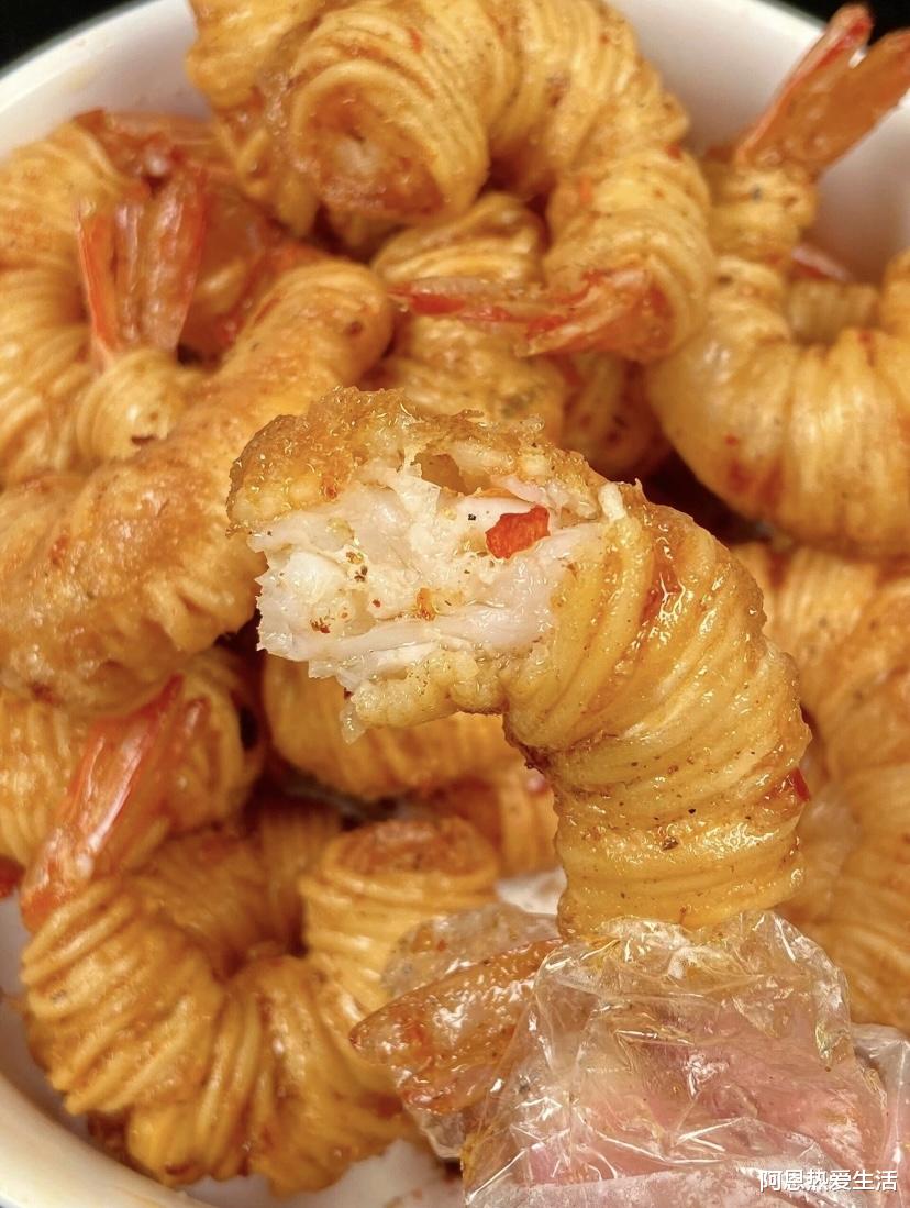 我第一次做这道菜,其实是为了哄我那个挑食的小侄子。他平时看到虾就摇头,说虾壳太硬,剥起来麻烦。我灵机一动,把虾壳剥了,用面条缠起来炸得金黄,跟他说这是“小金条”。