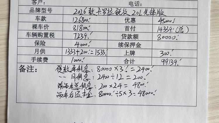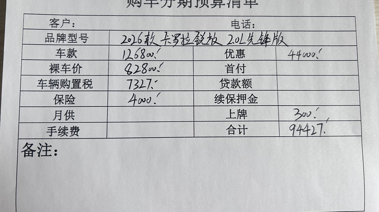 年底买卡罗拉锐放,全款、贷款,落地分别需要多少?买哪个版本,将来后悔的概率较小?本篇文章,依然是纯净无广,请放心食用。