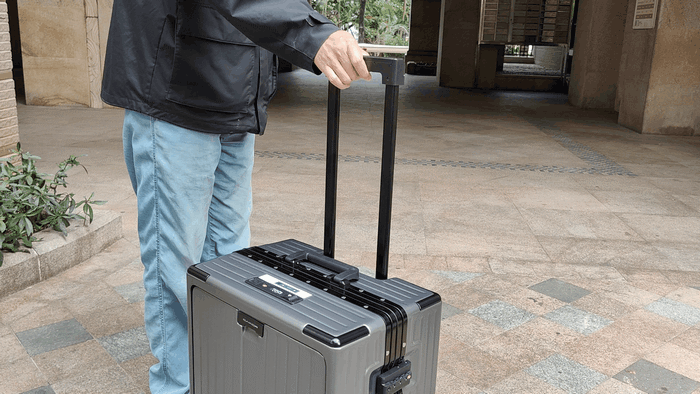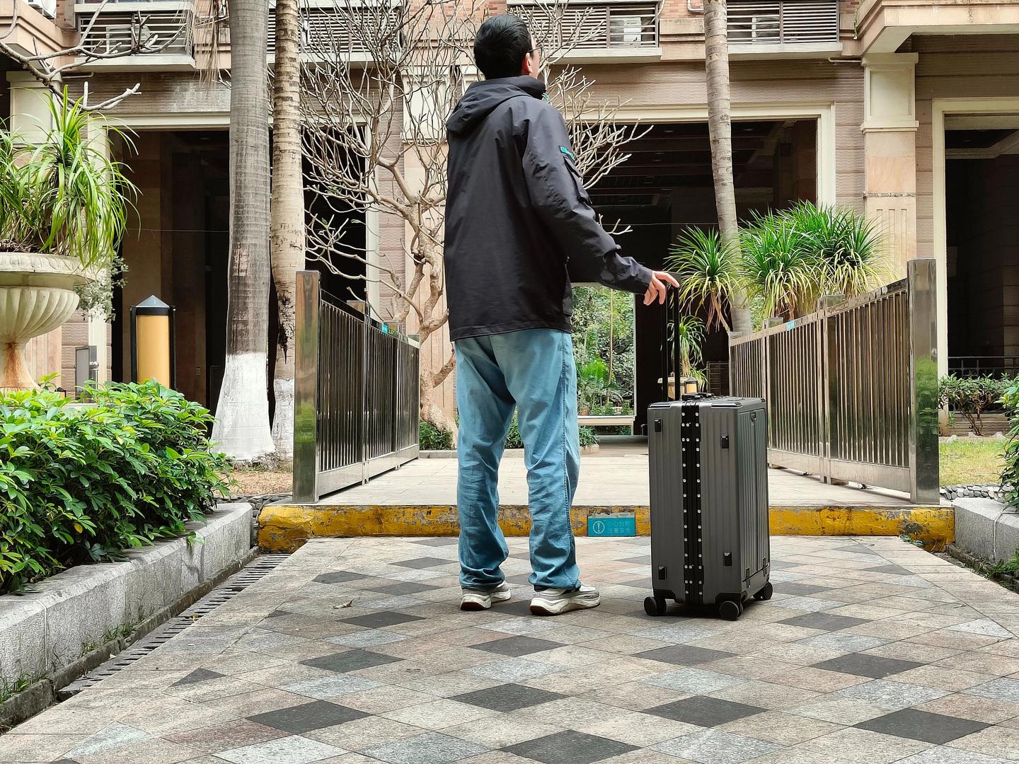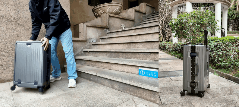 而且拉杆的牢固度特别好,左右水平摇晃的距离特别短,比我之前用的箱子稳定多了。我还特意拉着装满东西的箱子上下 5 级楼梯,模拟出行时过机场台阶的场景,拉杆完全没有变形或松动的迹象,长时间拖行也不会觉得费力。