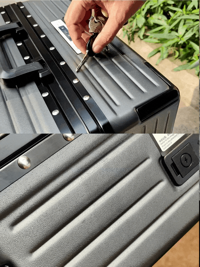接着是满载测试,把箱子塞到快合不上的状态,扣紧卡扣后,双手握住箱体两端用力左右、上下晃动了 10 次,结果不仅卡扣纹丝不动,铝框的开合也依然顺畅,这要是换之前的旧箱子,估计早就出现缝隙了。要知道GaKior行李箱承重能做到 200 公斤,靠的就是四层科思创材质和进口双层棱形波浪结构,这种硬核配置在机场托运时被其他箱子堆叠、野外露营时当临时坐凳,都完全不用担心随时爆箱。