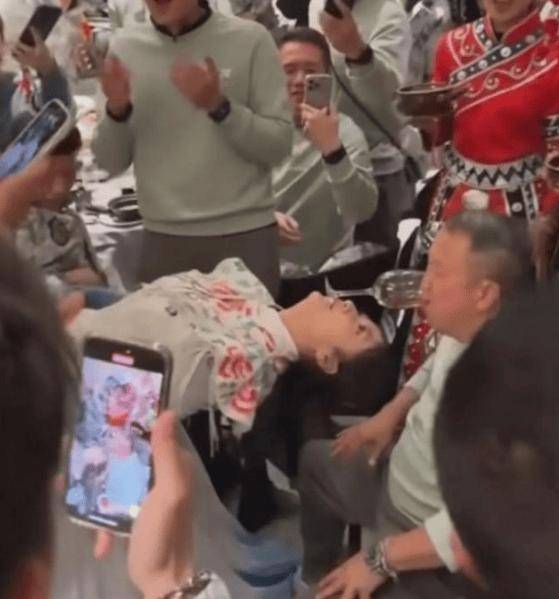 其中一位年轻貌美的女子叼着酒杯向后弯腰,而曾志伟则俯身向前,用嘴代替手,小心翼翼地凑过去喝酒。可见离巢之后的曾志伟过的更加有声有色了!